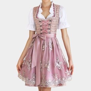 • Women’s Dirndl Midi Costume Dress German Dress for Oktoberfest Pink
